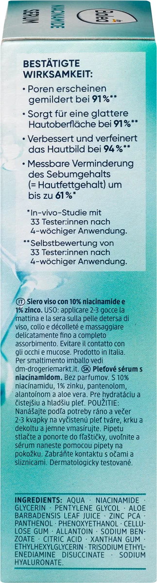 10% NIACINAMIDE refine enlarged pores and strengthen the natural skin barrier, The SERUM refines the complexion and ensures a smoother skin surface.