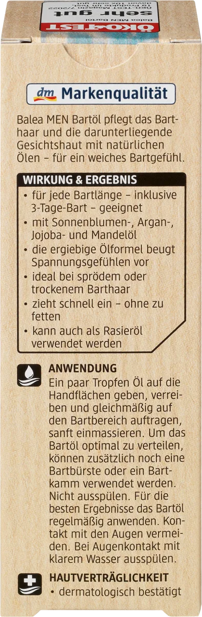 beard oil MEN from Balea nourishes the beard hair and the underlying facial skin with natural oils, The rich oil formula prevents feelings of tension.