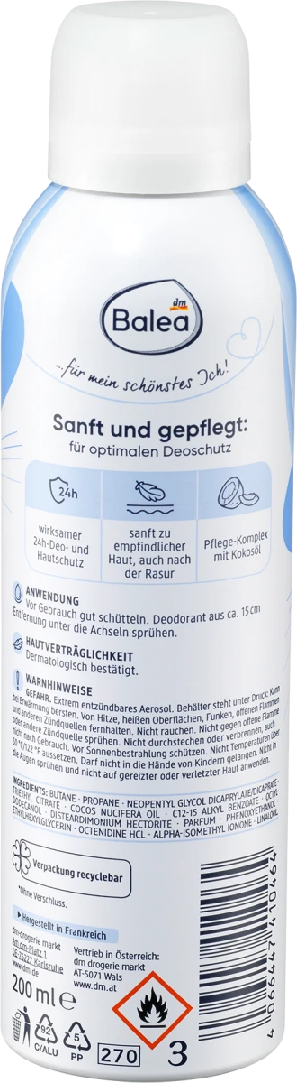 The Balea Sensitive Deodorant Spray provides long-lasting protection for sensitive skin.