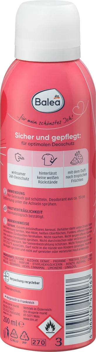 Spray the Balea deodorant under the armpits from a distance of about 15 cm.