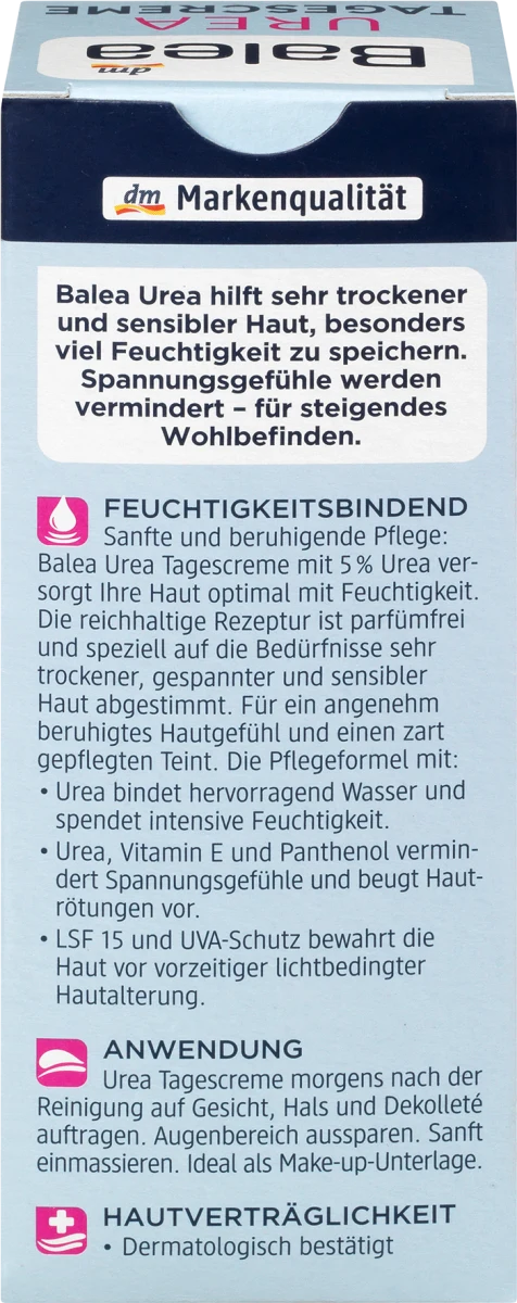 Balea Urea day cream with 5% urea provides your skin with optimal moisture.