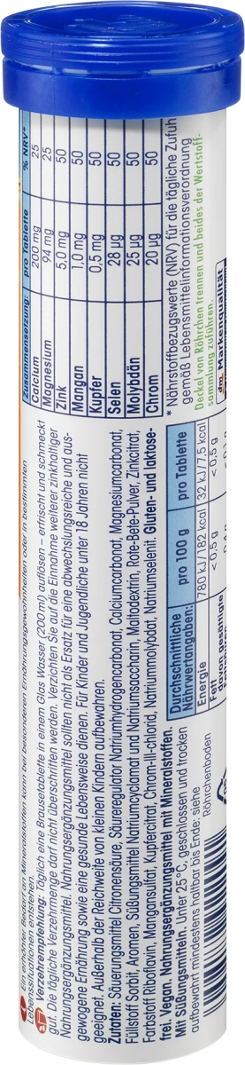 Dissolve one effervescent tablet in a glass of water (200 ml) every day – it refreshes and tastes good. The daily consumption amount must not be exceeded. Avoid taking other dietary supplements containing zinc. Dietary supplements should not be used as a substitute for a varied and balanced diet or a healthy lifestyle. Not suitable for children and young people under 18.