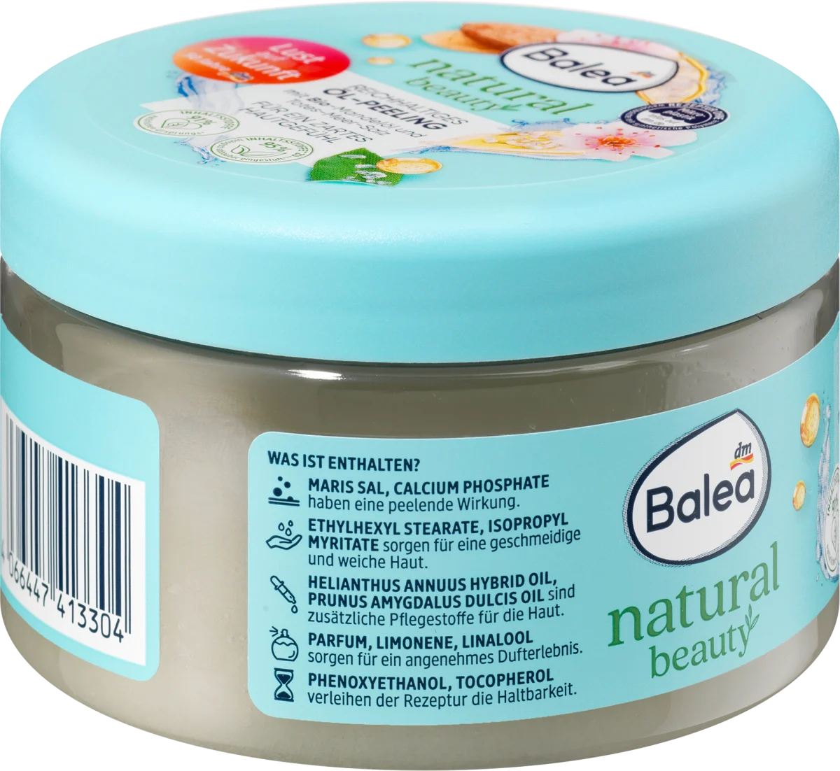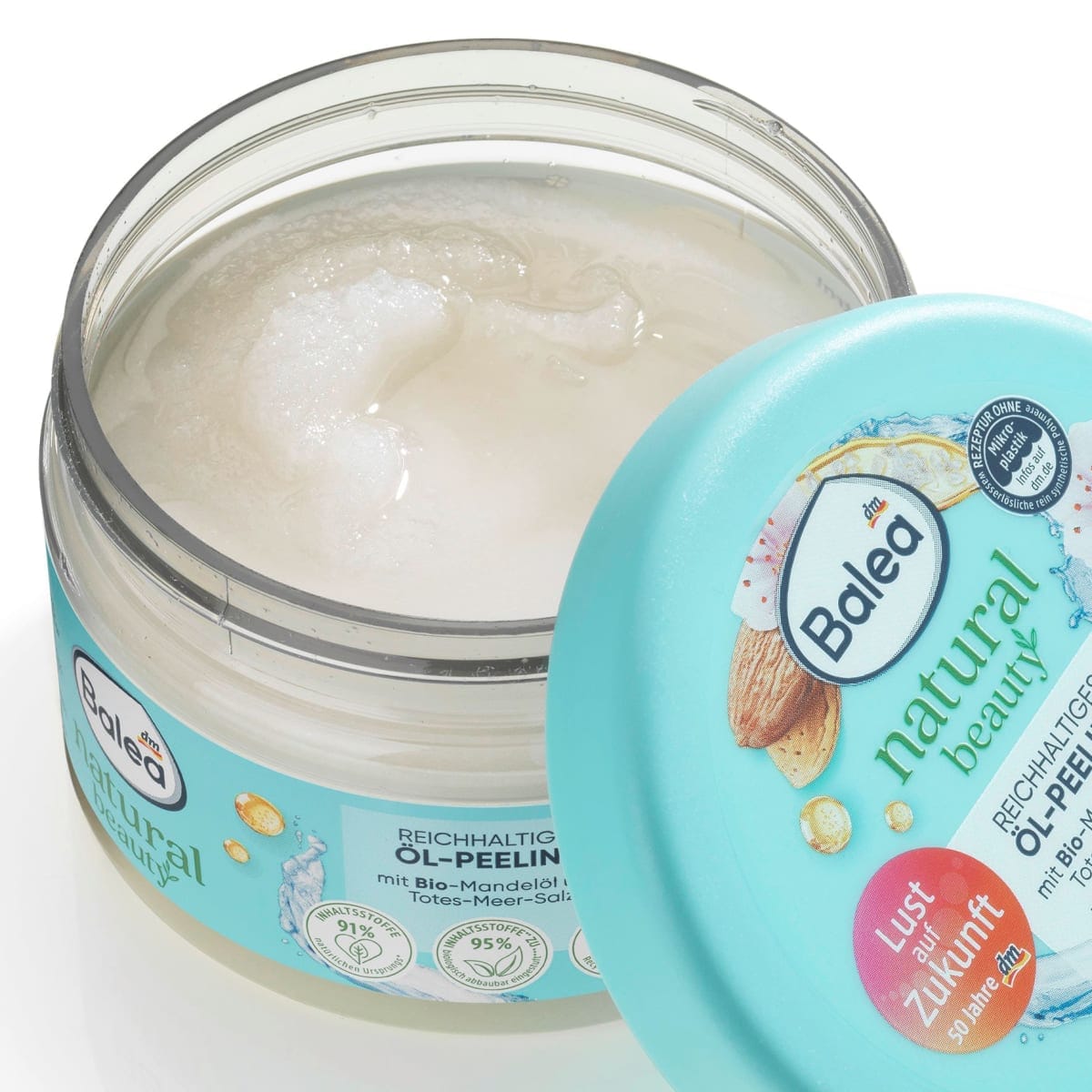 • Vegan The Natural Beauty oil scrub with Dead Sea salt & organic almond oil from Balea envelops the senses and nourishes the skin with valuable ingredients.