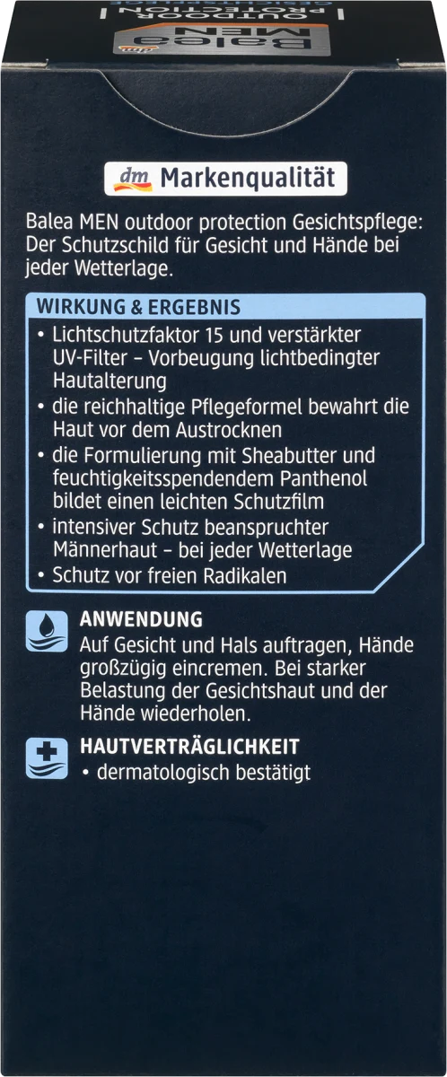 Balea MEN Outdoor Protection Facial Care offers a protective shield for the face and hands in all weather conditions.