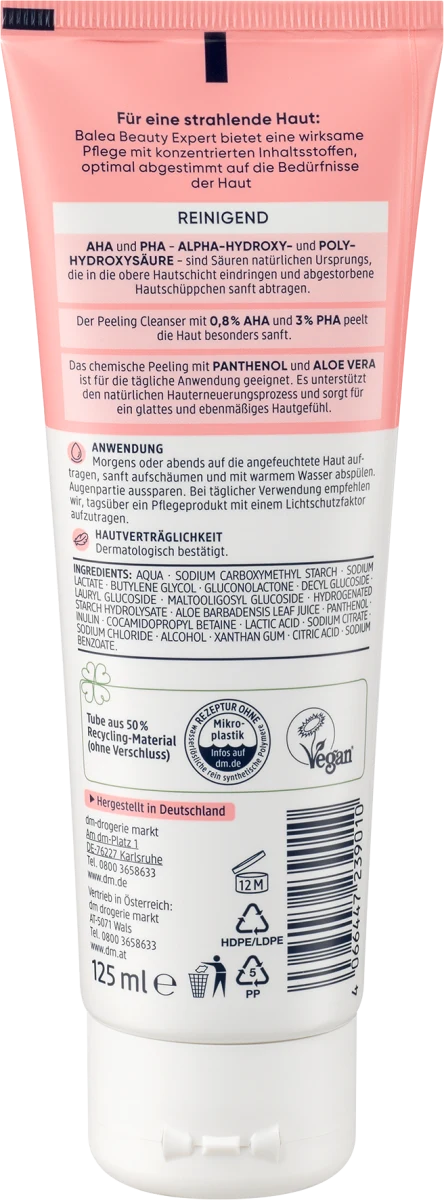 Balea Beauty Expert Peeling Cleanser offers effective care with concentrated ingredients, optimally tailored to the needs of the skin.