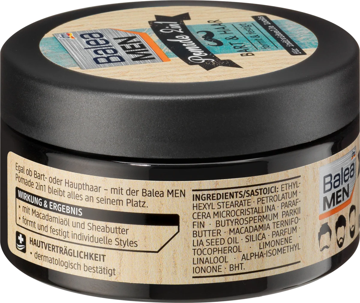 with Balea MEN Pomade 2in1 everything stays in place. With macadamia oil and shea butter