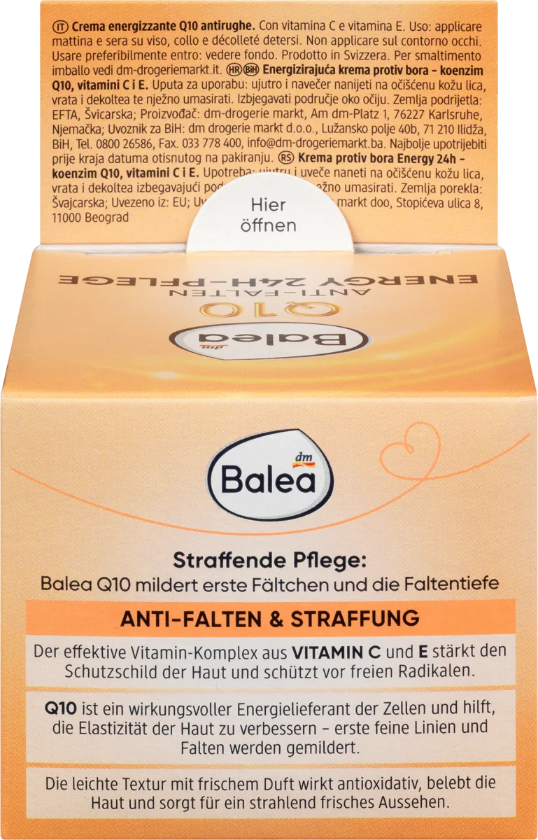 Balea Q10 softens first wrinkles and the depth of wrinkles. The effective vitamin complex of VITAMIN C and E strengthens the protective shield of the skin and protects against free radicals.