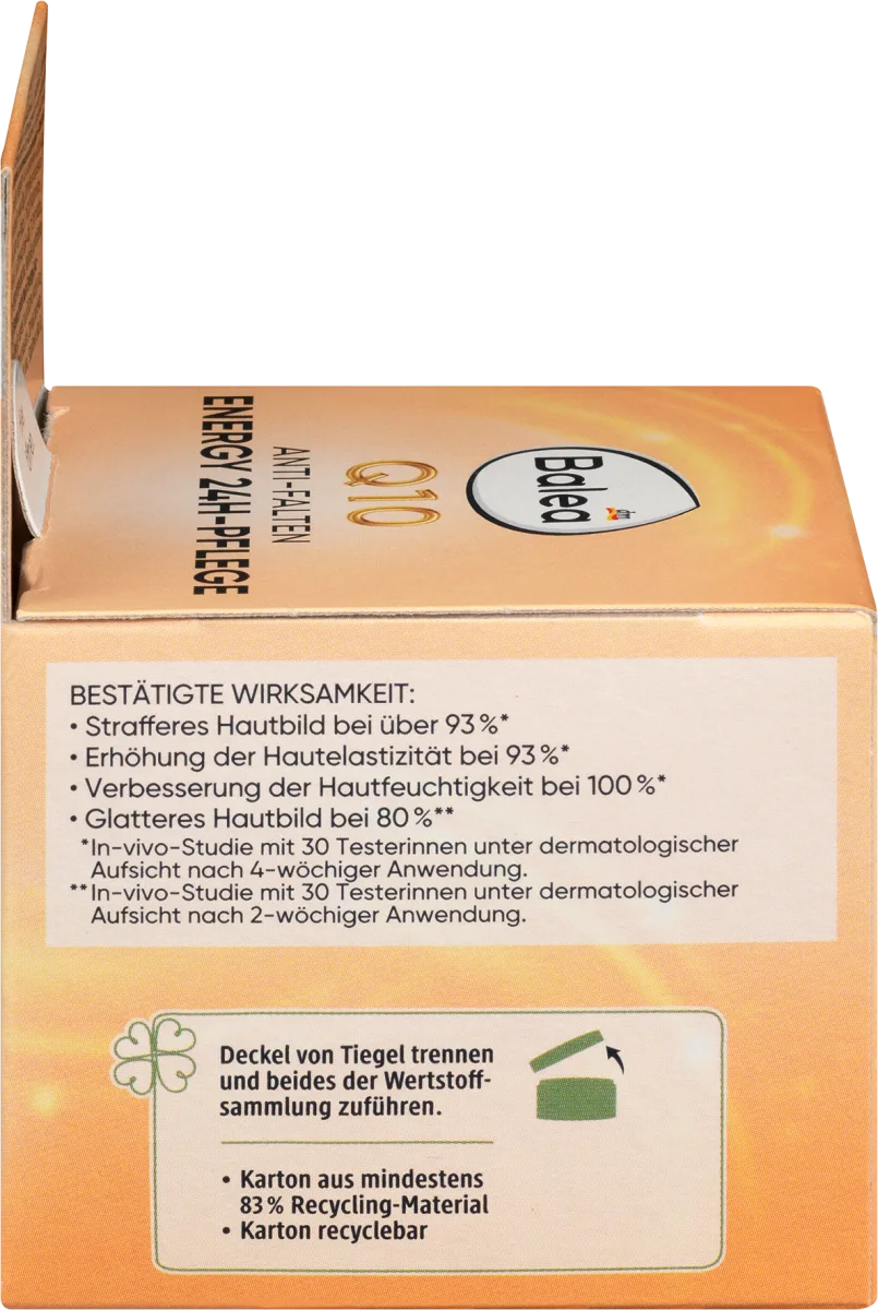 Q10 = is an effective energy supplier to the cells and helps to improve the elasticity of the skin – first fine lines and wrinkles are softened.